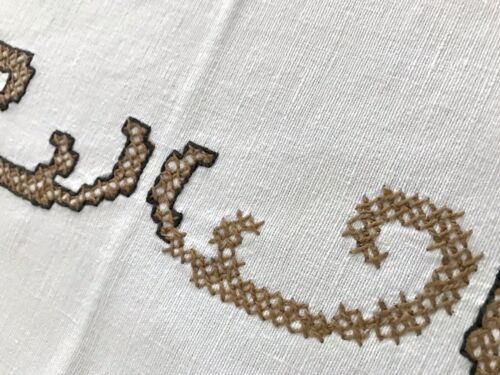 Antik Edel Tischdecke Tafeltuch 116 x 109 weiß Leinen bunt bestickt Art Déco