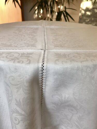Antik Edel Tischdecke Tafeltuch 120 x 118 weiß Seidendamast Leinen Monogramm MF