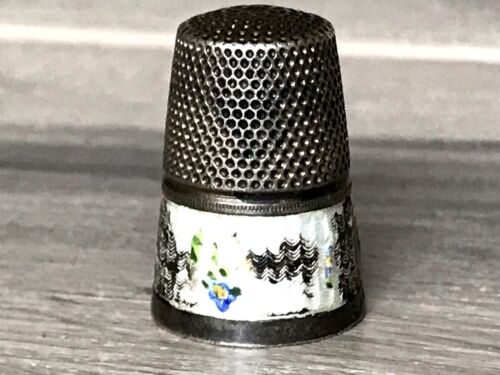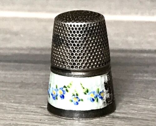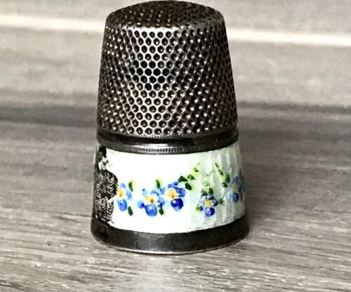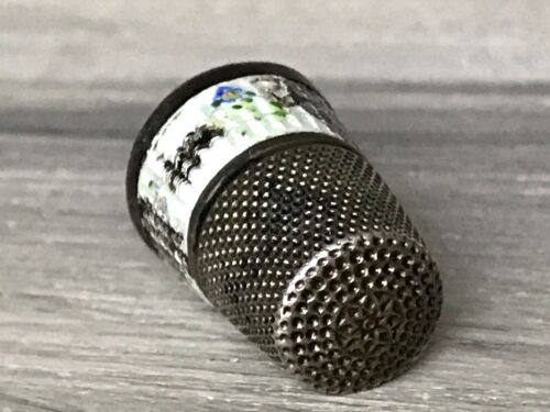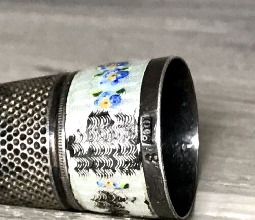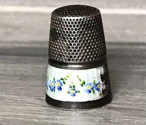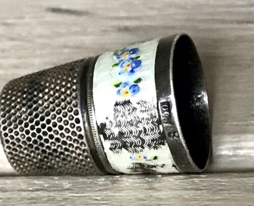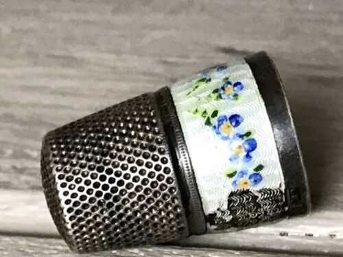 Antik Fingerhut 900 Silber Emaile Vergissmeinnicht
