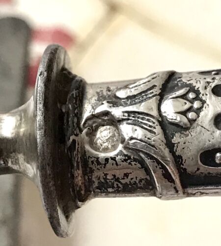 Das Messer ist auf der Klinge mit „Paris“ gepunzt, Silberpunze habe ich keine entdecken können, aber getestet und aus Silber.