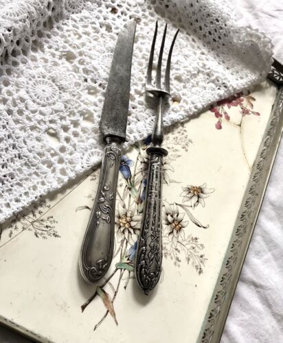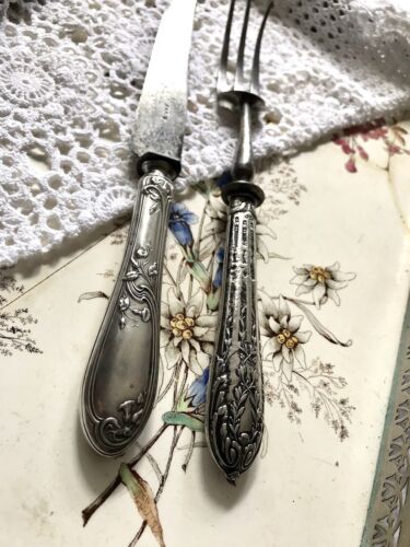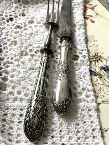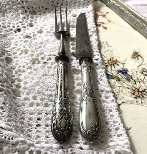 Antik französisch 2teiliges Tranchier Besteck Silber Minerva getestet
