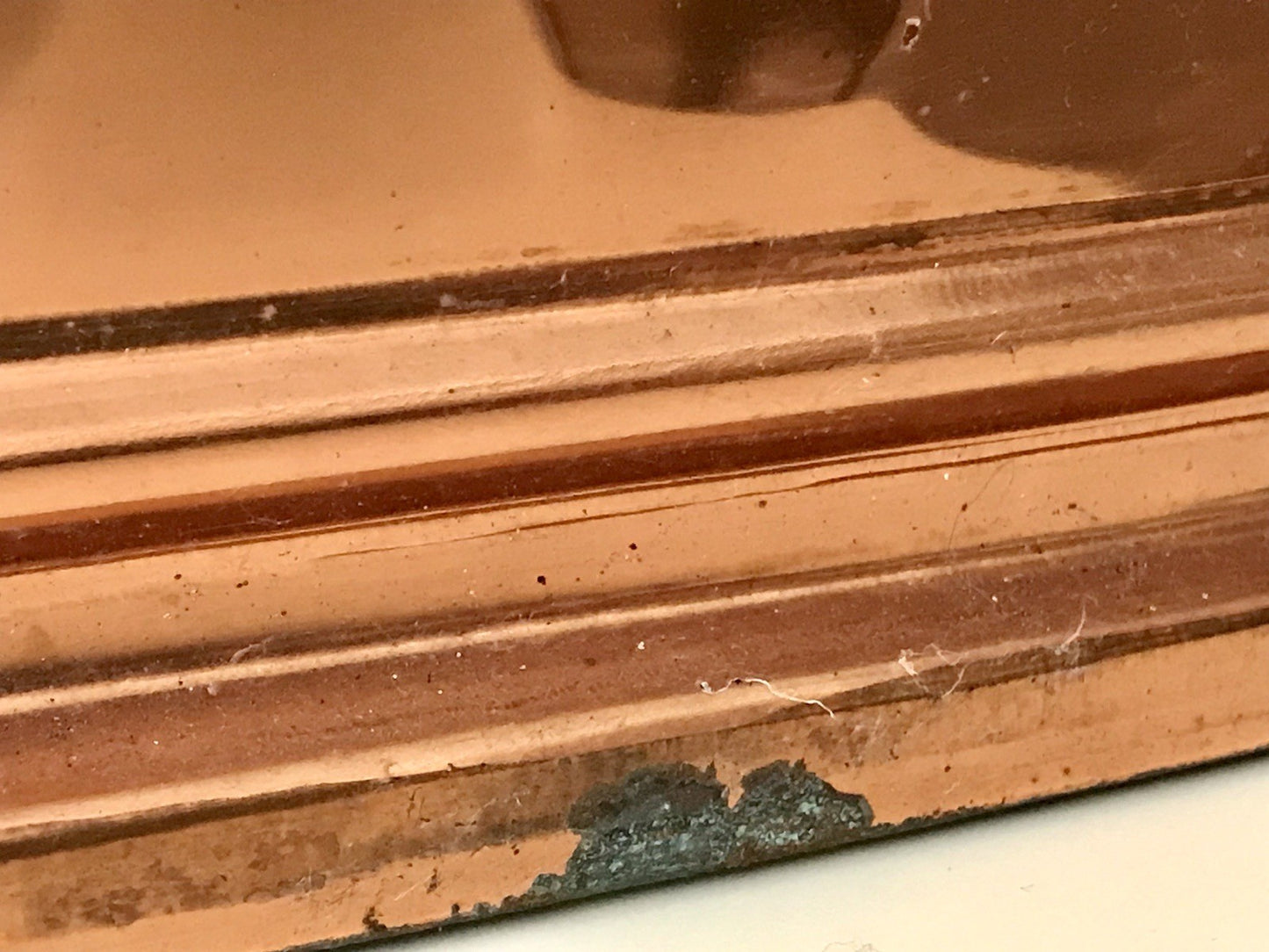 Seitlich fehlen wohl Ringgriffe, diese waren vermutlich messingfarben. Dies ist aber leicht zu ersetzen.