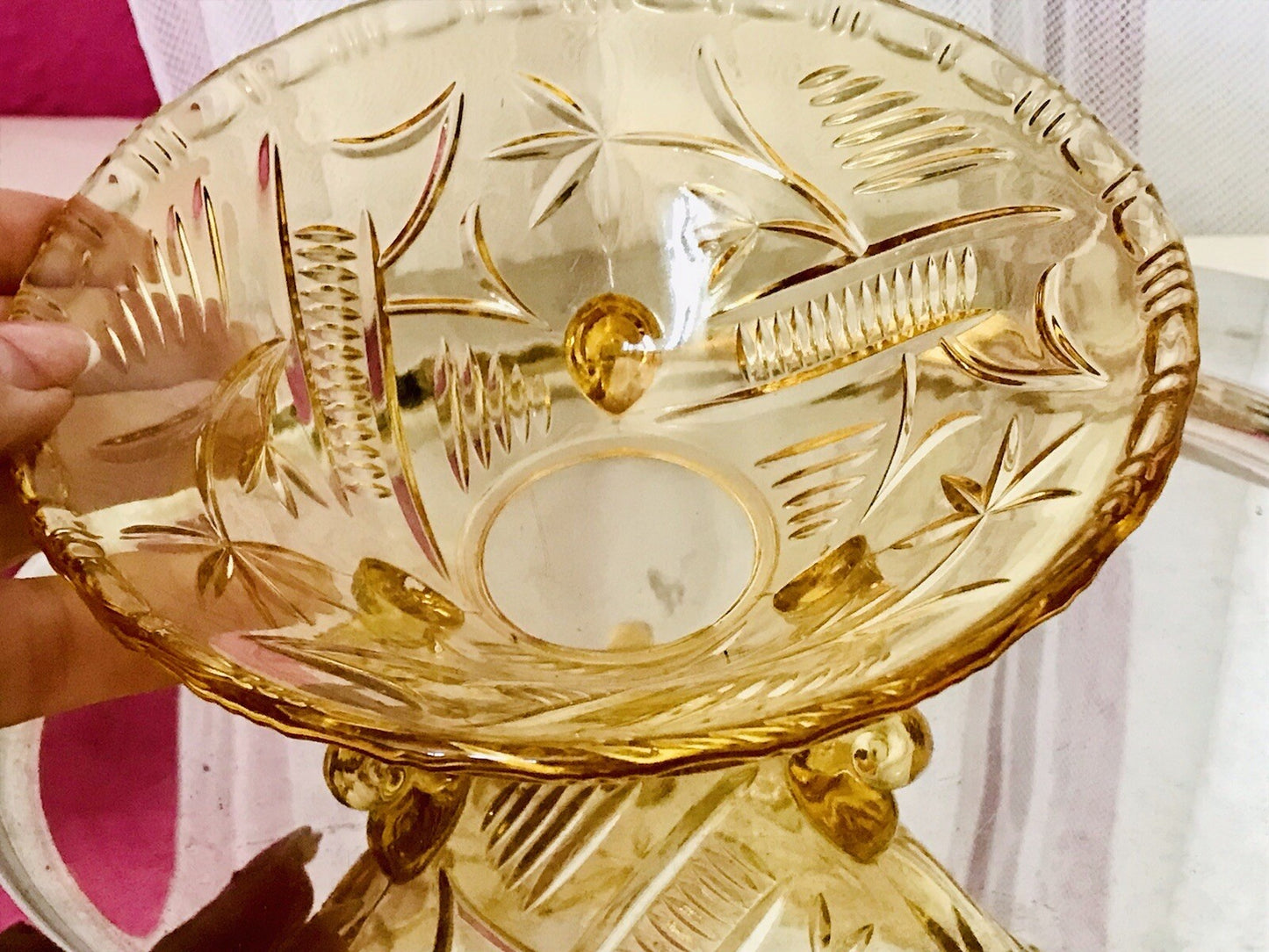Antik gelb Art Déco Schale Pressglas Glasschale 3füßig So Schön!