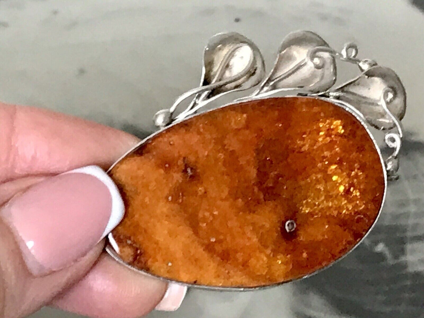 Antik GROßE Brosche als Anhänger ? DAMEN Silber Jugendstil Bernstein WUNDERVOLL