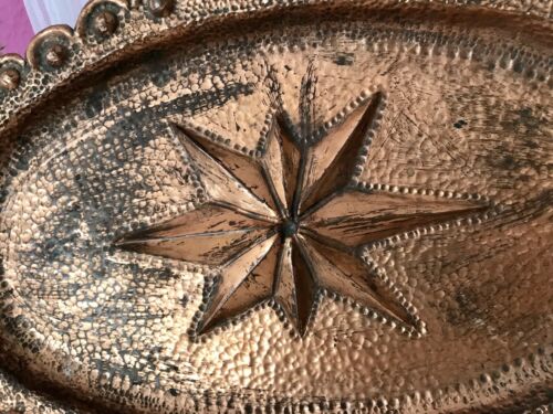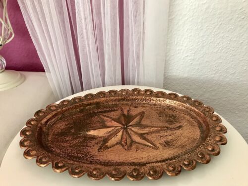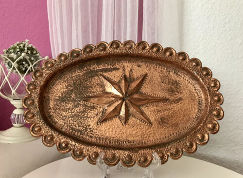 Antik große ovale Schale Zierschale gestreckter Stern Relief Hamnerschlag Kupfer