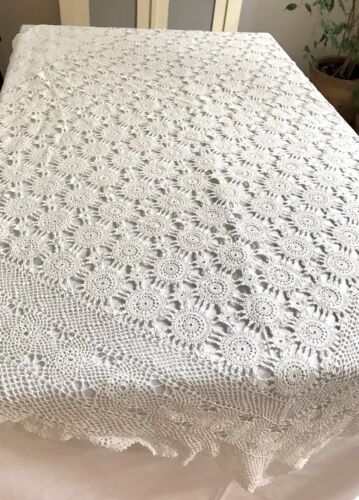 Antik Häkelspitze Tischdecke 170x120 gehäkelt Weiß Baumwolle Spitze Landhaus
