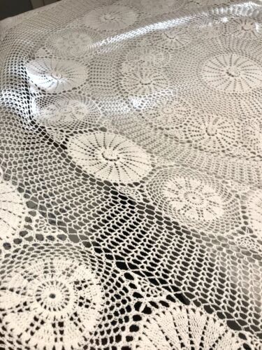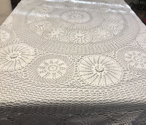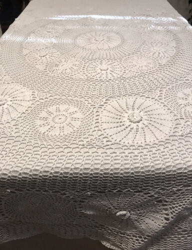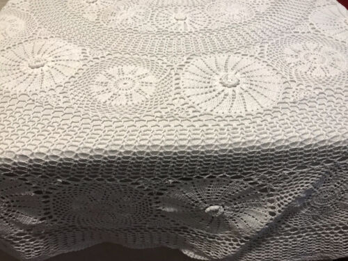 Antik Häkelspitze Tischdecke Rund 180 cm gehäkelt Weiß Baumwolle Spitze Landhaus