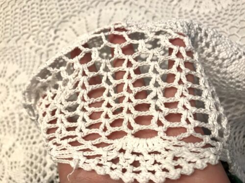 Kommodengriff präsentiert eine einmalig schöne wundervolle weiße runde antike Tischdecke aus handgehäkelter Spitze/Häkelspitze