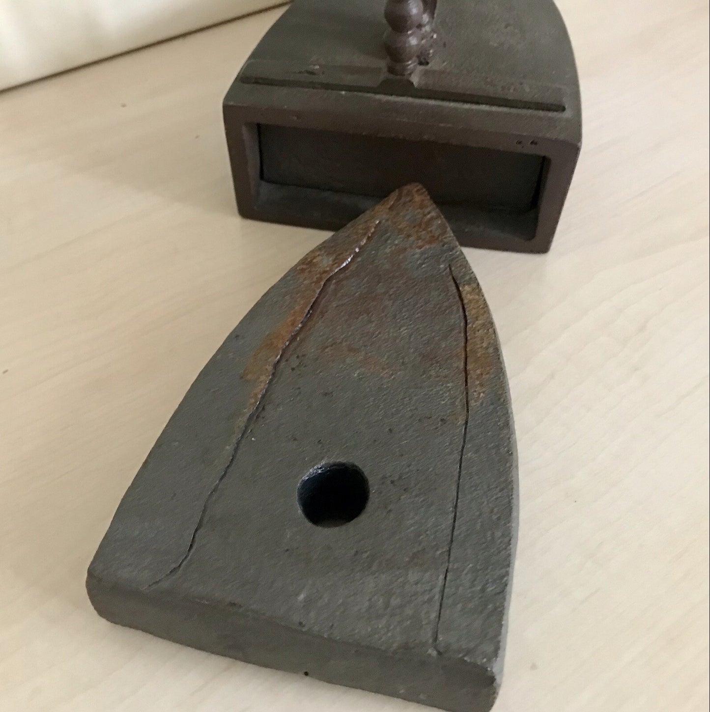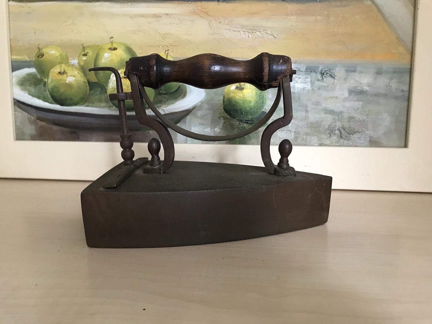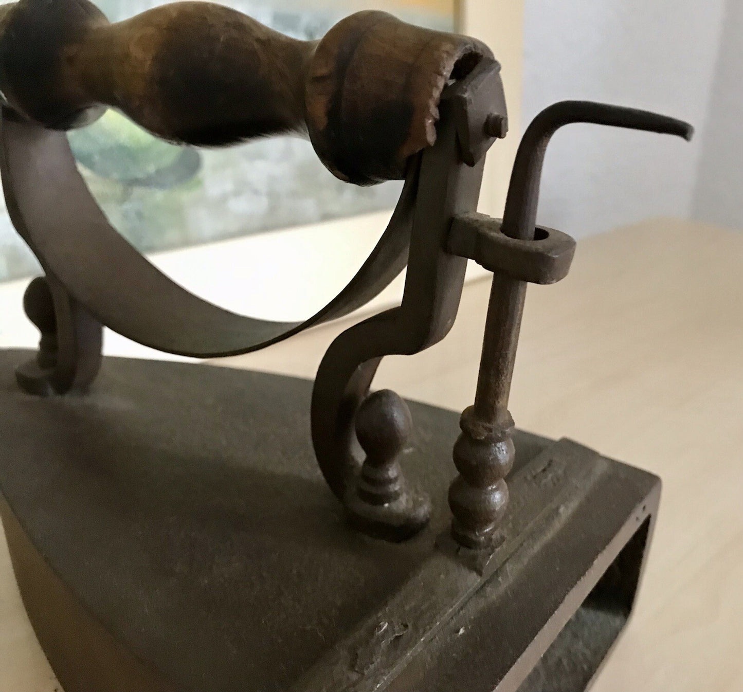 Kommodengriff präsentiert ein dekoratives antikes historisches Bügeleisen mit Eisenkern aus den ❤️~1850 Jahren