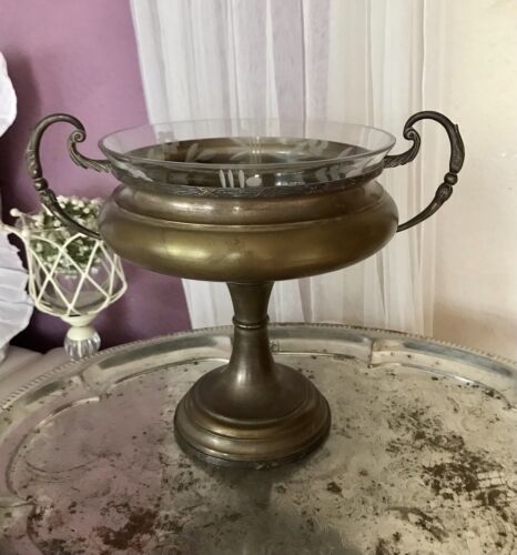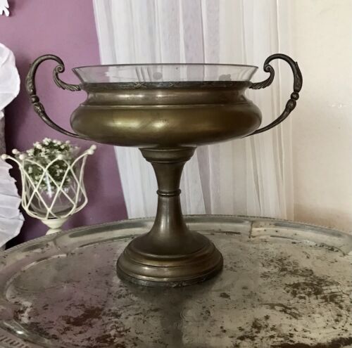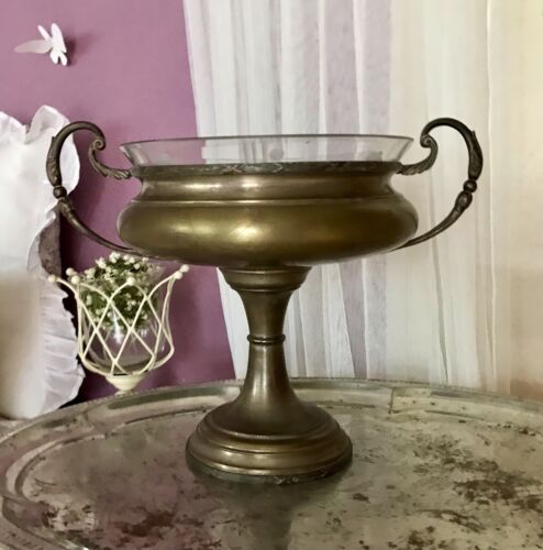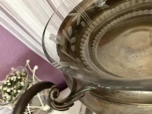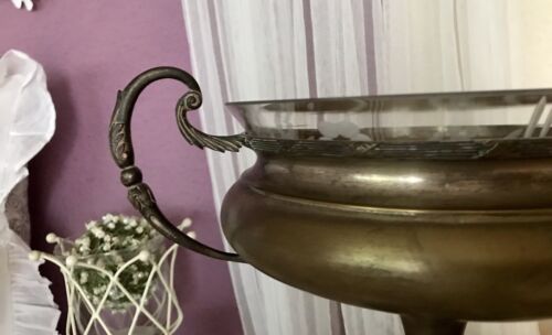 KOM-014-AKommodengriff präsentiert eine wunderschöne recht große ehemals versilberte Schale Tafelaufsatz Aufwarteschale Anbietschale Schale auf Fuß Jardiniere mit Glaseinsatz