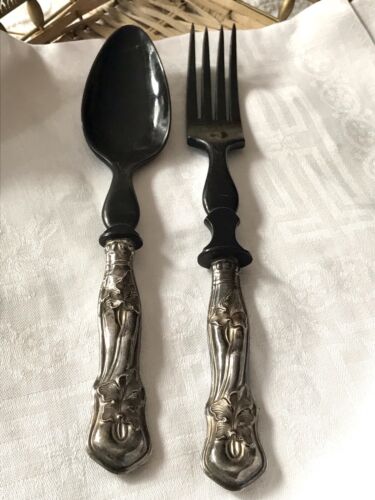 Antik Jugendstil 2teiliges Salat Besteck Silber getestet Bakelit?