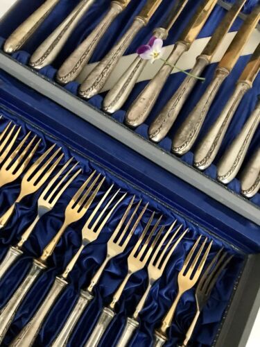 Es besteht aus 12 Obstgabeln und 12 Obstmessern.