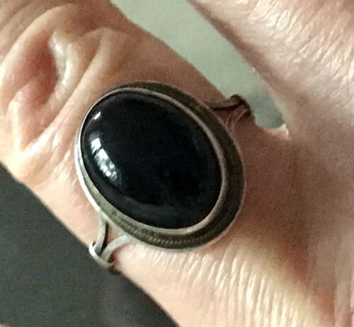 Antik Jugendstil Art Déco Onyx DAMEN RING Silber 800 Gr.54 55 17,2 17,5