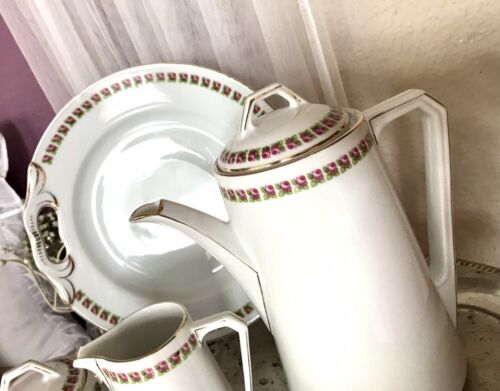 Antik Jugendstil Art Déco Porzellan Kaffeeservice Rosenbordüre Rosen Goldrand