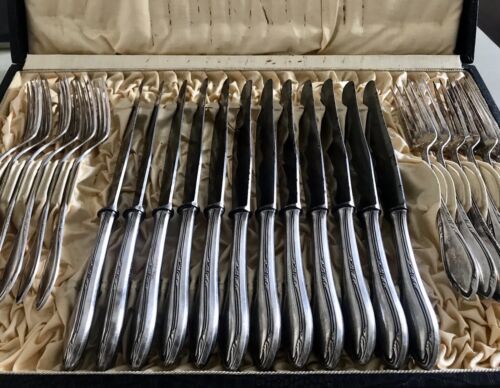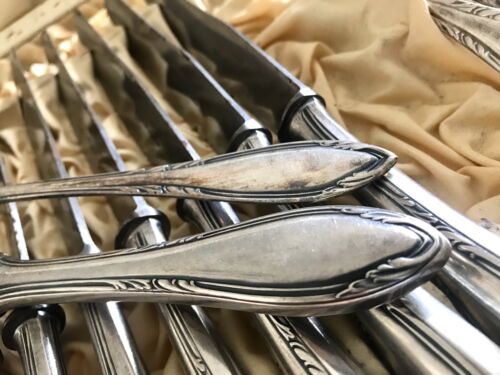 Antik Jugendstil Art Déco versilbert Besteck 12 Personen & Besteckkasten