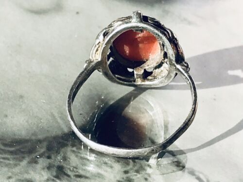 Antik Jugendstil Edel roter Stein Koralle? DAMEN RING Silber 935 Gr. 61/62