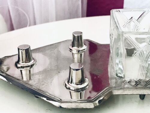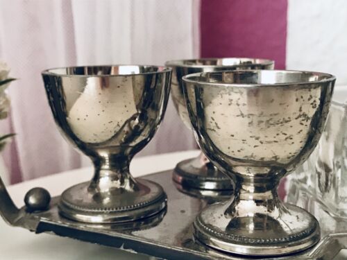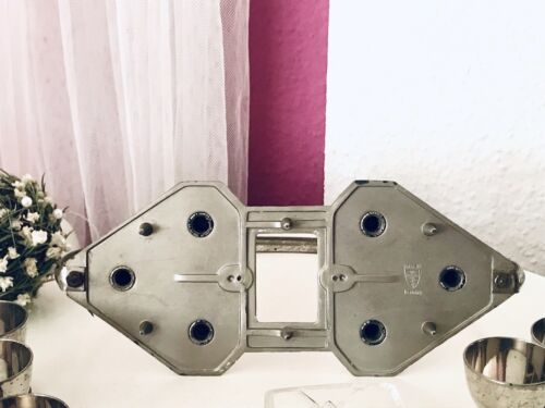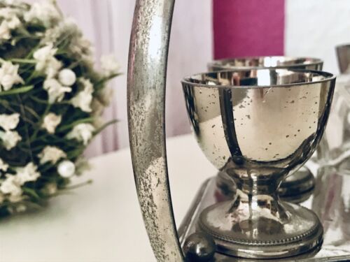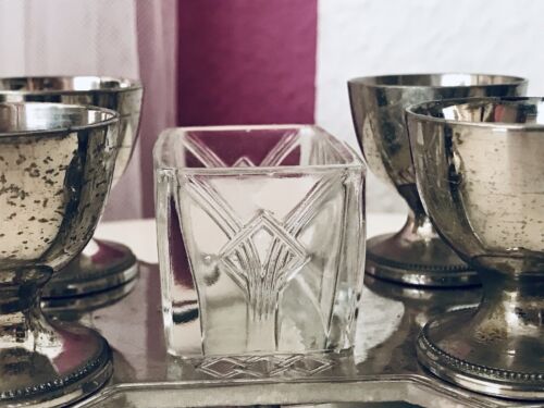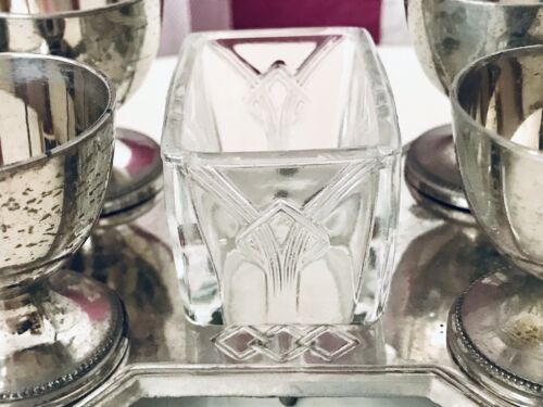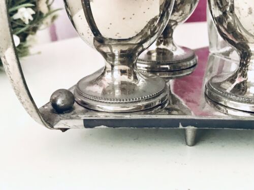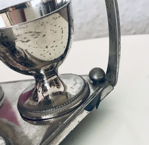 Antik Jugendstil Menage Eimenage Frühstück Metallmontur Glaseinsatz Pressglas