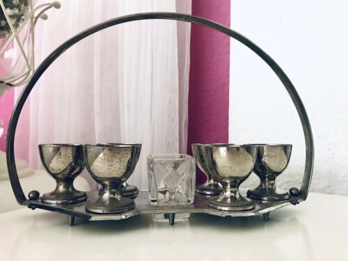 W07-03Kommodengriff präsentiert eine wunderschöne antike Jugendstil Menage Eier-Menage Frühstück -Menage für 6 Eier laut Stempel unterseitig von der Manufaktur Heimendahl & Keller aus Hilden