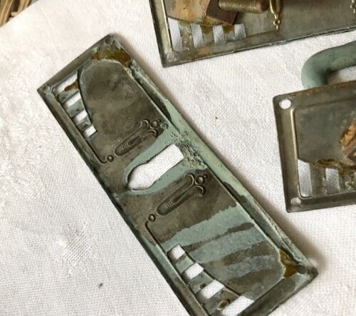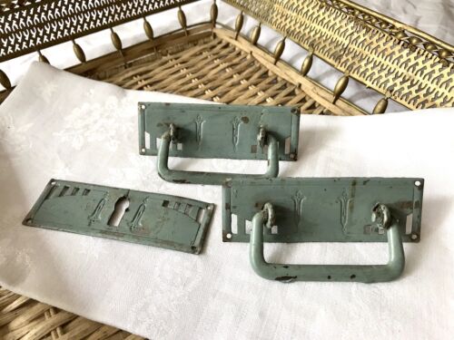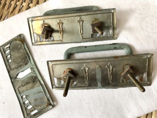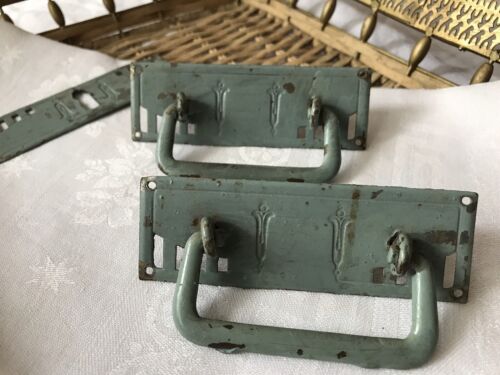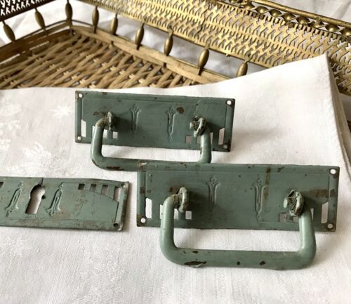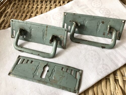Antik Jugendstil Original 3 Kommodengriffe Möbel Beschläge Patina petrol blau