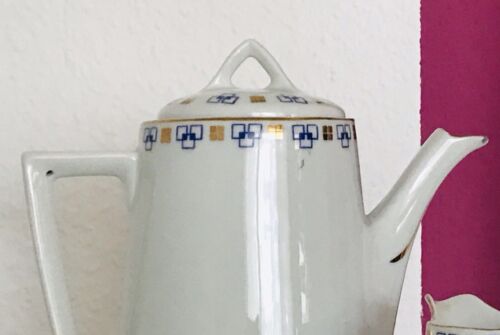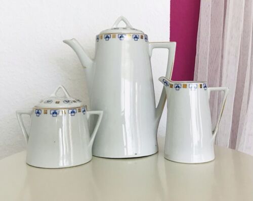 Antik Jugendstil Porzellan Kaffee Kernstück Kanne Sahnegießer Zuckerdose Würfel
