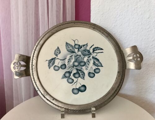 Antik Jugendstil Tortenplatte Metallmontur Porzellan bzw. Keramik gemarkt