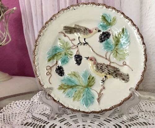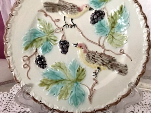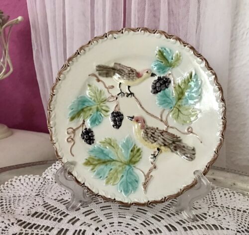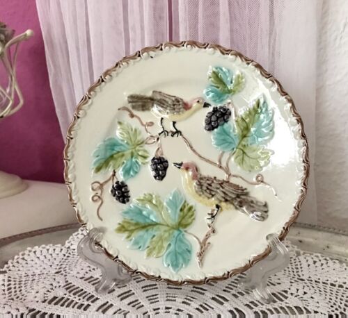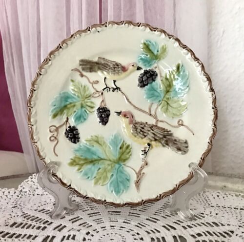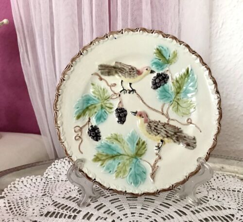 Antik Jugendstil Zell Keramik Majolika Schale Vögel Rebe Visitenkartenschale