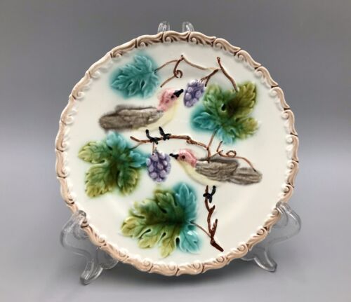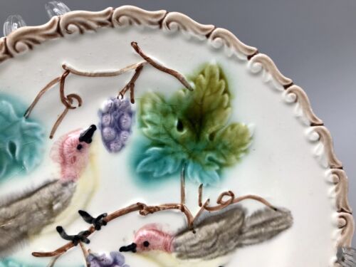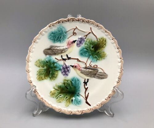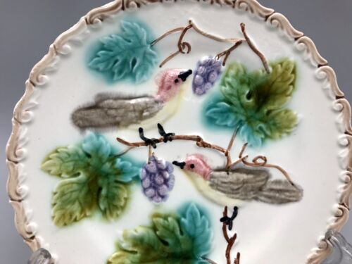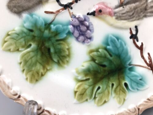 Antik Jugendstil Zell Keramik ? Majolika Schale Vögel Wein Visitenkartenschale