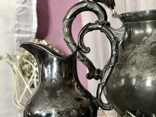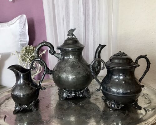 Antik Kaffee Kernstück 3 Teile Kanne Milch& Zucker versilbert viktorianisch