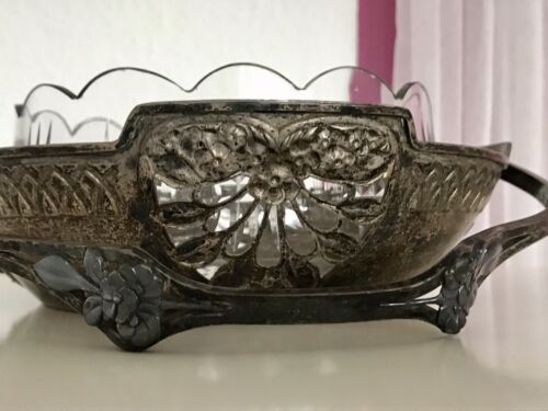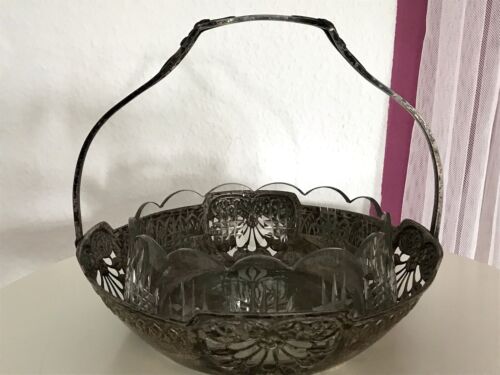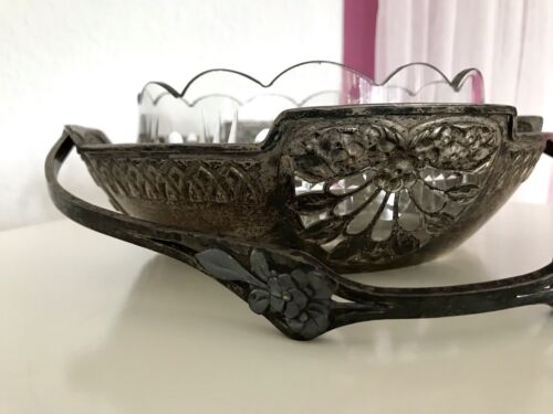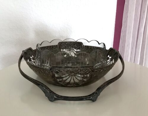 Antik Kayser Schale Jugendstil Korbschale Glaseinsatz Tafelaufsatz Korb