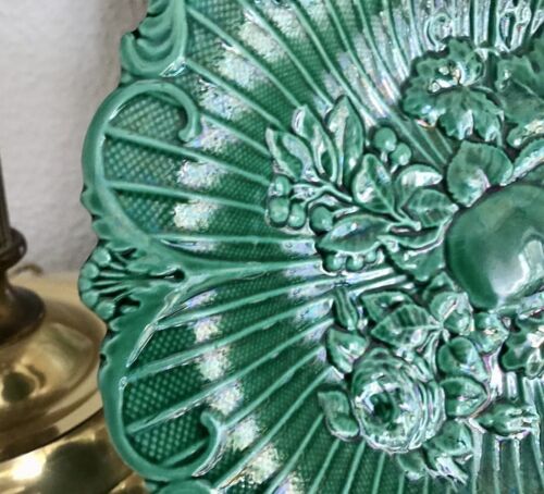 Antik Keramik Majolika Teller Zierteller Schale grün Luxemburg gemarkt