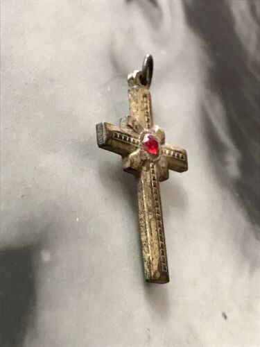 Antik Kettenanhänger Anhänger Farbe gold Amerikan Doublè? Kreuz roter Stein