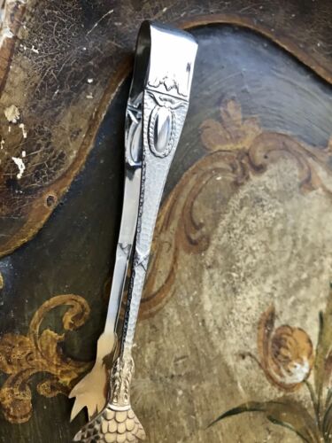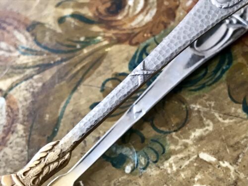 Antik klassizistisch Zuckerzange verchromt gold Krallengreifer sehr dekorativ