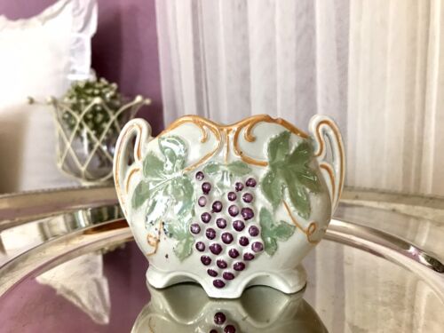 Antik kleine Jugendstil Porzellan Vase reliefiert Reben-Muster So Schön!