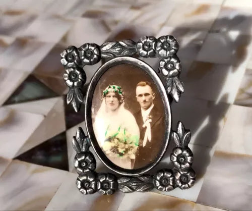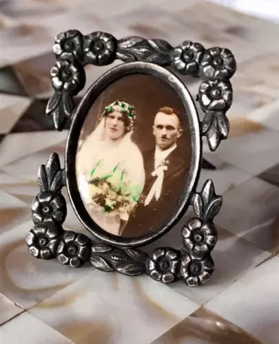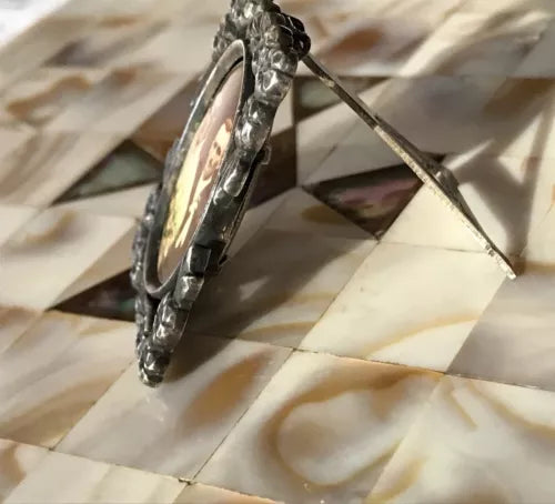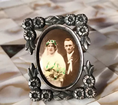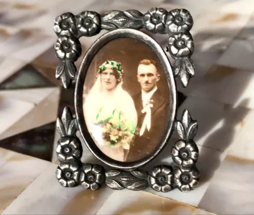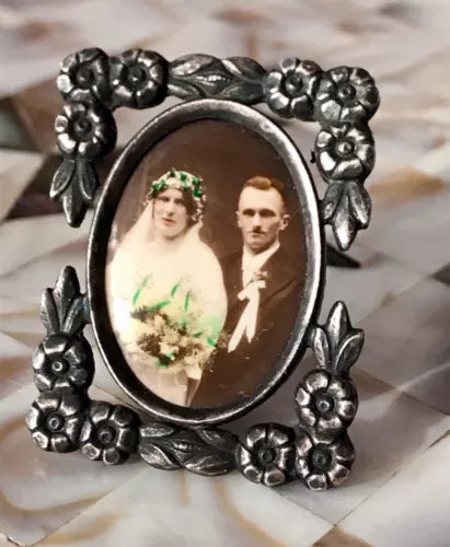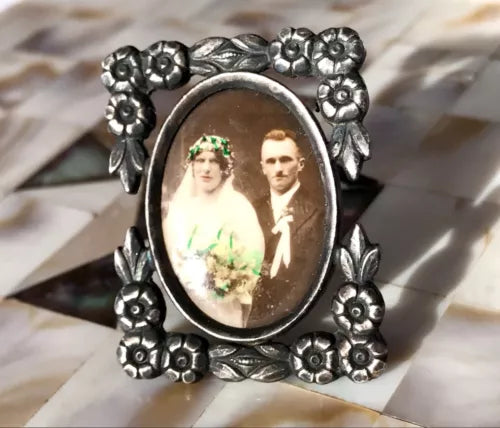 Kommodengriff präsentiert 1 wunderschönen antiken kleinen versilberten Bilderrahmen Reisebilderrahmen Ministur-Bilderrahmen