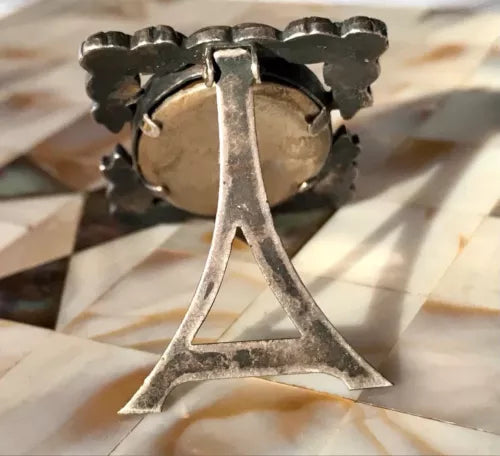 Der per Scharnier bewegliche Aufsteller/Ständer hat die Form des Eiffelturms - rafiniertes Detail.