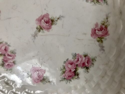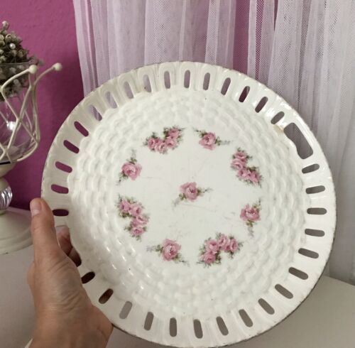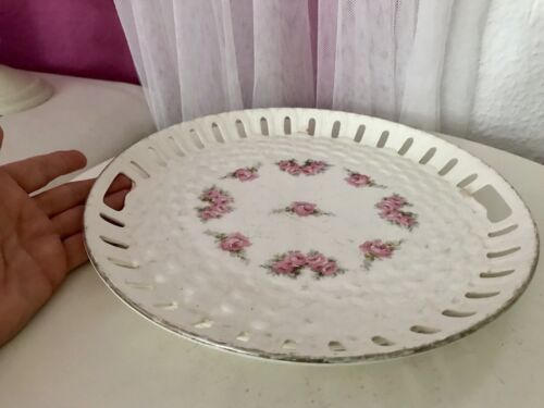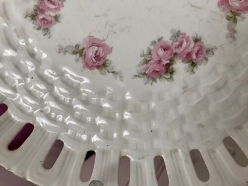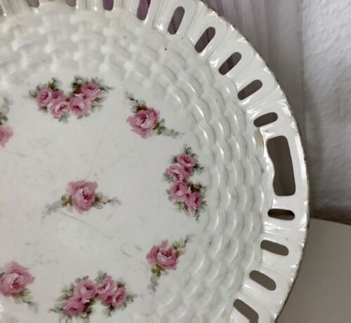 Antik Max Rösler Keramik Tablett? Platte Schale Durchbruch-Rand Rosen Art Déco