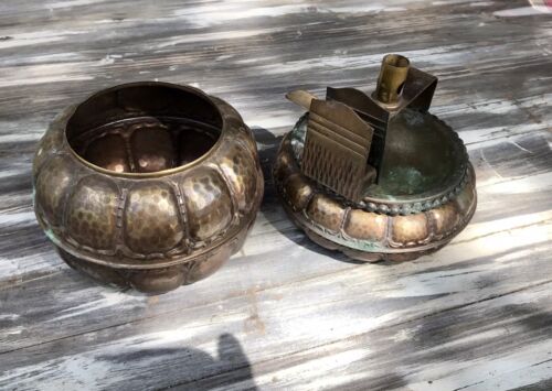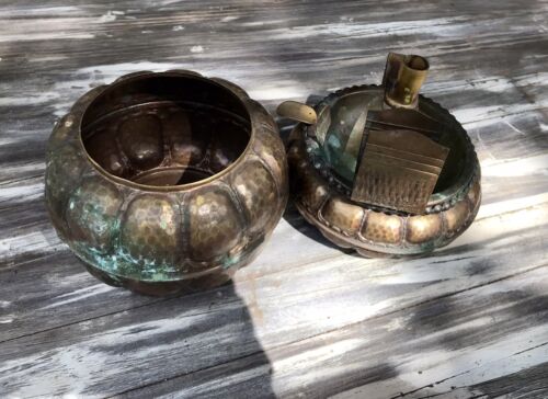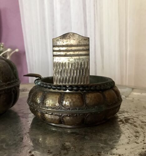 Antik Messing Kupfer Art Déco Aschenbecher Streichholzhalter Raucherset Schale
