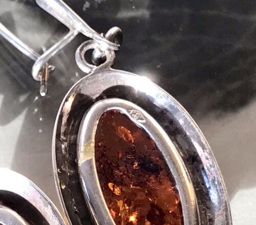 Antik Ohrringe Ohrhänger DAMEN 925 Art Déco Silber Bernstein Ohrhaken