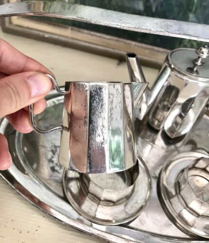 Größtes Manko ist die sich vom Metall lösende Beschichtung/Versilberung, insbesondere am Henkel und am Rand des Tabletts und am Sahnekännchen einseitig stärker.