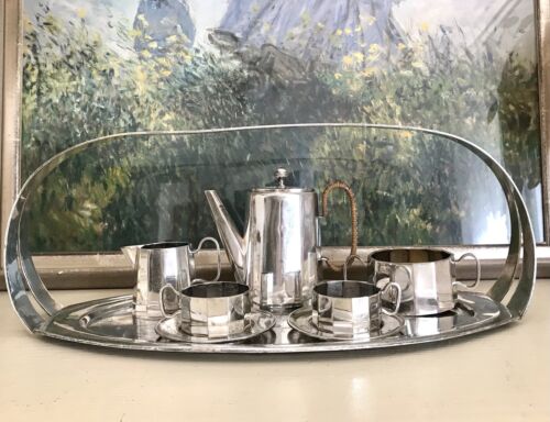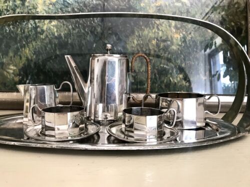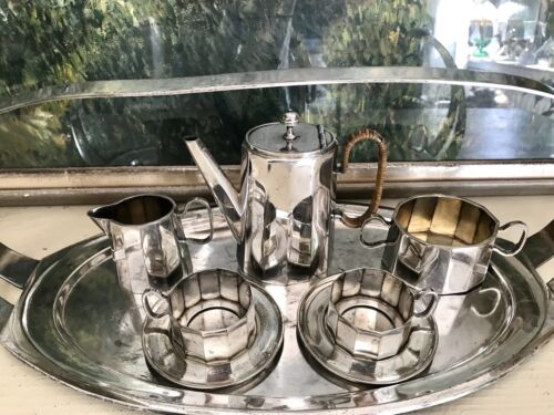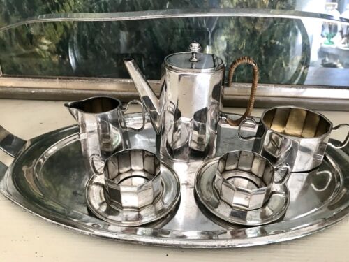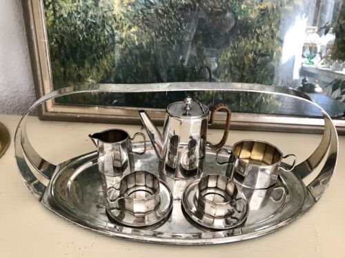 Kommodengriff präsentiert ein wunderschönes antikes seltenes außergewöhnliches 6teiliges Kaffee- bzw. Tee-Kernstück auf Tablett mit Henkel von Orivit