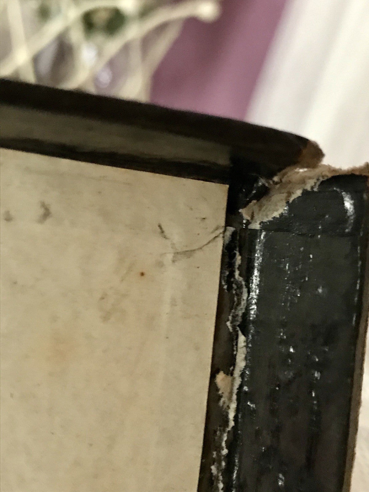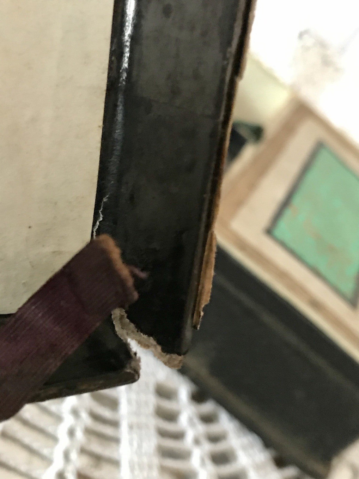 Pappmaché altersbedingt etwas fleckig, Ecken entweder gerissen oder bestoßen, siehe Bilder!