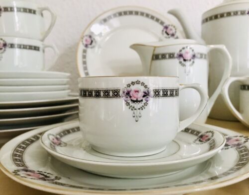 Antik reines Jugendstil Porzellan Kaffeeservice 10 Personen wunderschön!