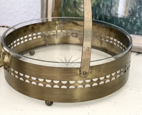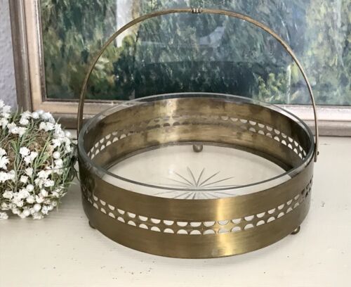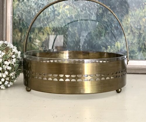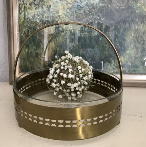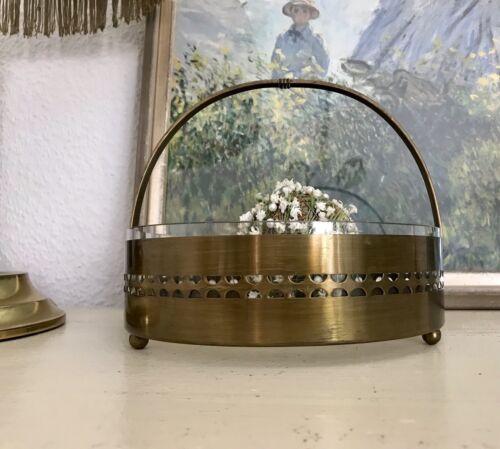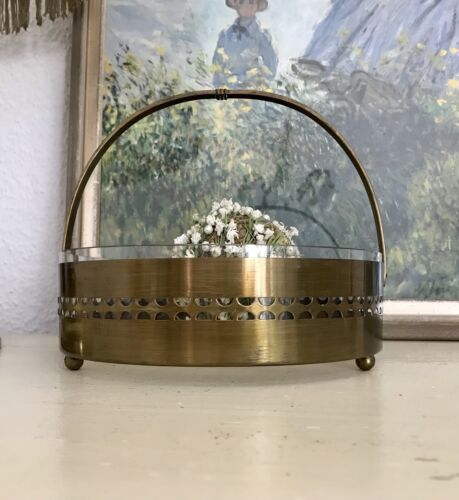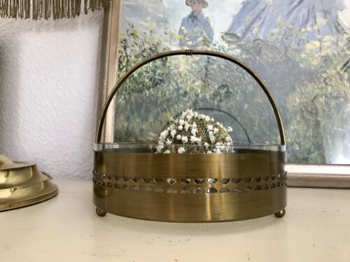 Antik Schale Messing Korb Jardiniere Art Déco um 1930 Glaseinsatz