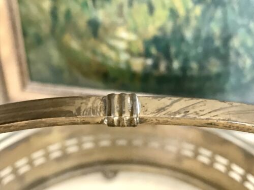 Kommodengriff präsentiert eine wunderschöne antike Art Déco -Jardiniere Schale mit geometrisiertem Durchbruchmuster der Messing-Metallmontur und Original-Glaseinsatz