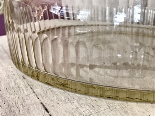Die wundervolle Glasschale umlaufend mit gestreckten Oliven geschliffen im unteren Bereich des Kristallglas-Teiles.