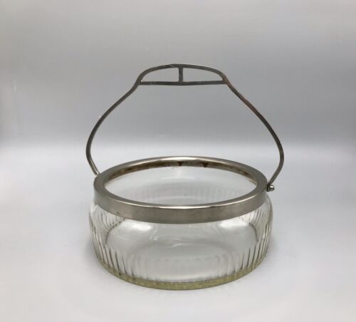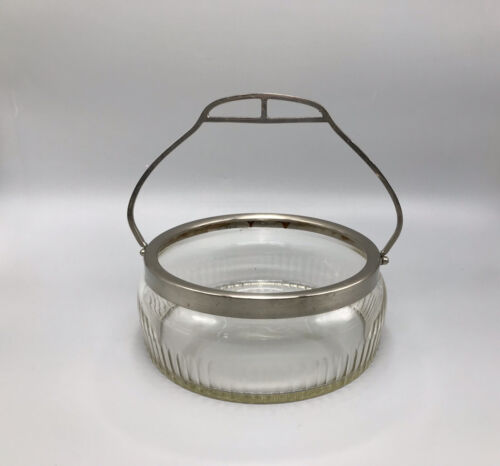 Kommodengriff präsentiert eine wunderschöne versilberte? Henkelschale Tafelaufsatz Aufwarteschale Anbietschale Schale Glasschale mit edlem und geschliffenen Glasteil wohl aus Kristallglas und Metallmontur versilbert? oder doch ver- chromt?