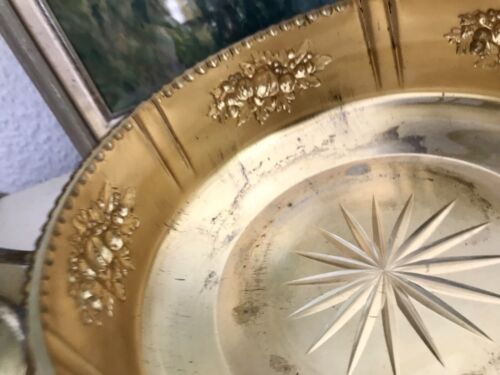 Kommodengriff präsentiert einen wunderschönen versilberten Tafelaufsatz Aufwarteschale Anbietschale Schale Jardiniere mit edlem und geschliffenen Original-Glaseinsatz