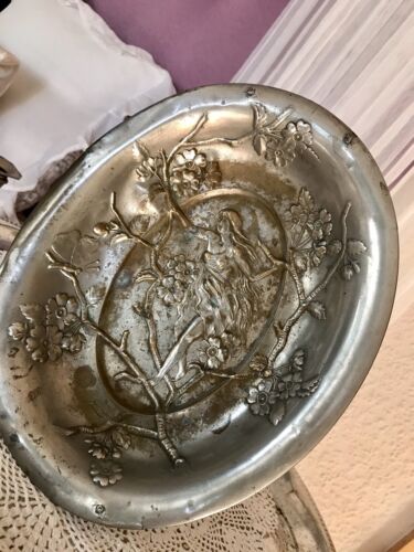 Antik Schale versilbert Schale Visitenkartenschale Jugendstil Nymphen-Motiv