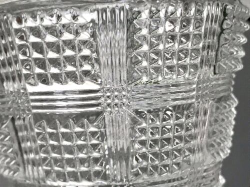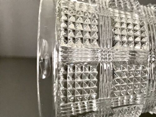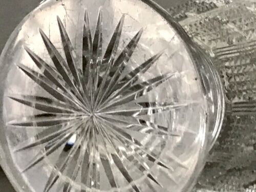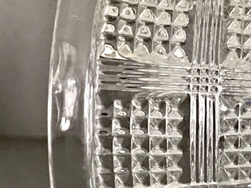 Der Fuß des meinen unterscheidet sich aber wesentlich von der Abbildung. Während bei der Abbildung die Fußplatte dicht gemustert ist, ist hier die Fußplatte mit Sternschliff geschliffen.