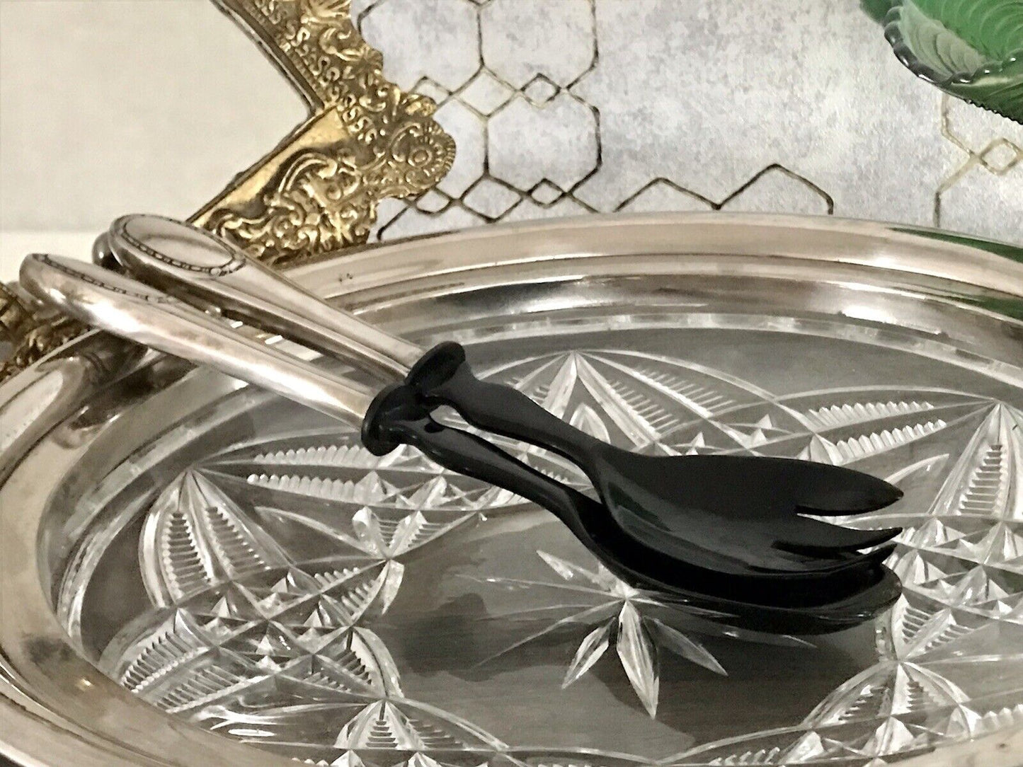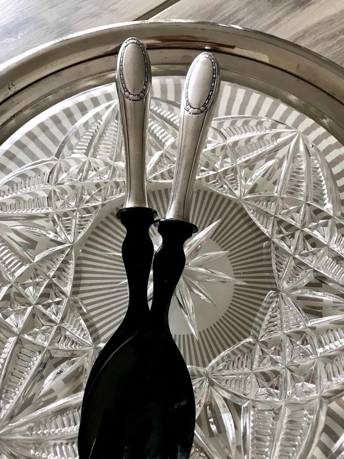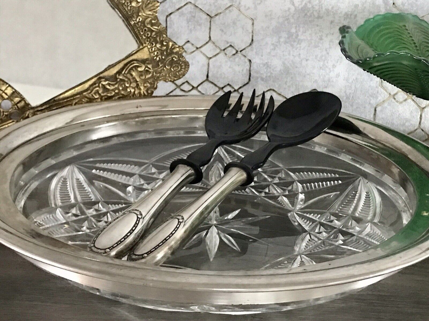 Kommodengriff präsentiert ein wundervolles sehr dekoratives antikes versilbertes 2 teiliges Salatbesteck